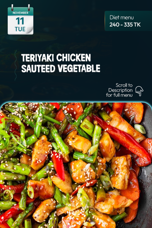 Teriyaki Chicken Sauteed Vegetable Salad Brown Fried Rice Nut Pack Mouth Freshener |