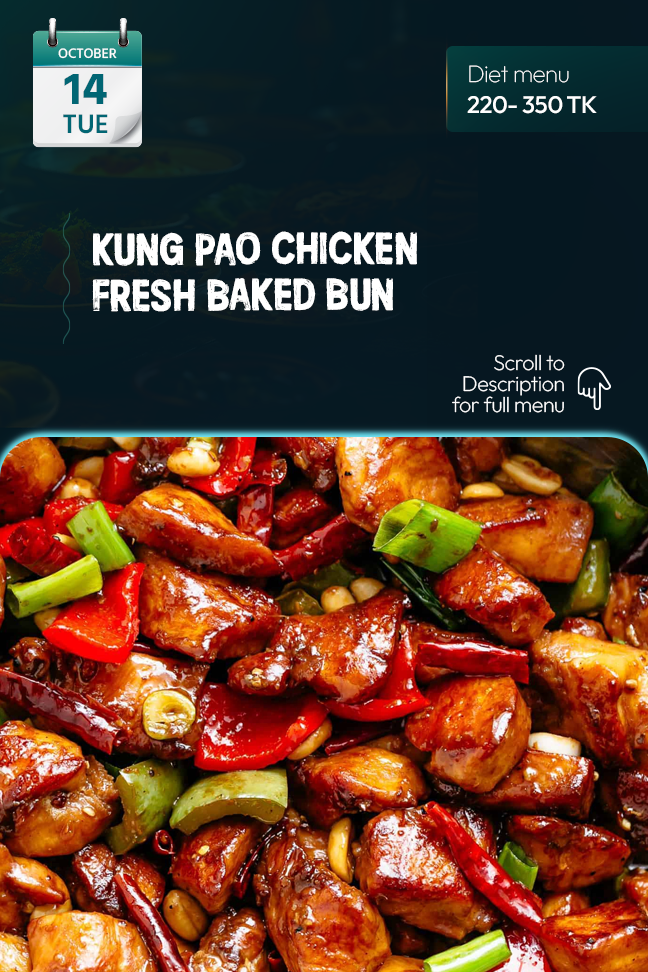 Diet Regular - Alternative Menu | Kung Pao Chicken Fresh Baked Bun Fresh Salad Roasted Nut Mouth Freshener |