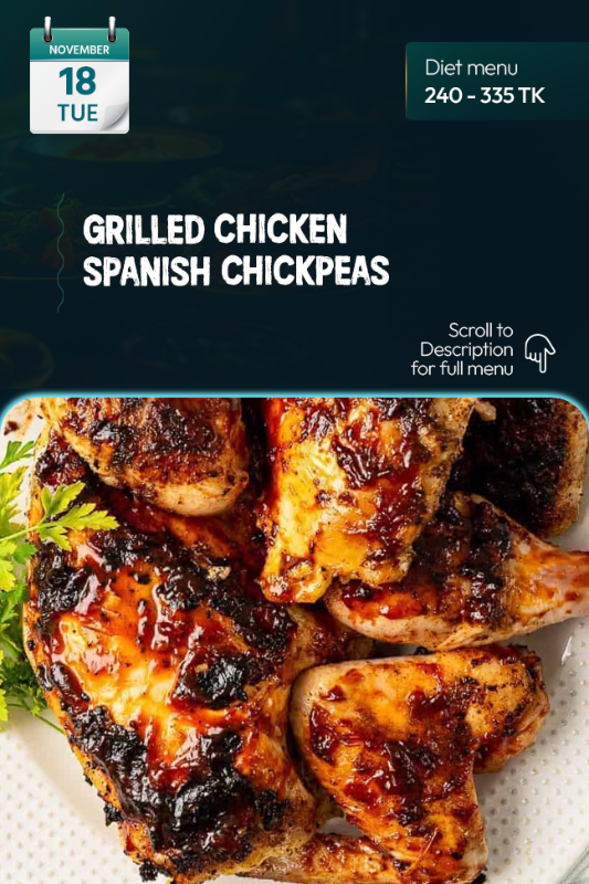 Grilled Chicken Spanish Chickpeas Salad Brown Rice Nut Pack Mouth Freshener |