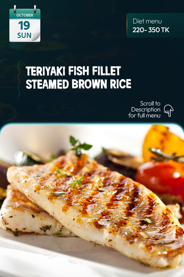 Diet Regular | Teriyaki Fish Fillet Steamed Brown Rice Fresh Salad Roasted Nut Mouth Freshener |