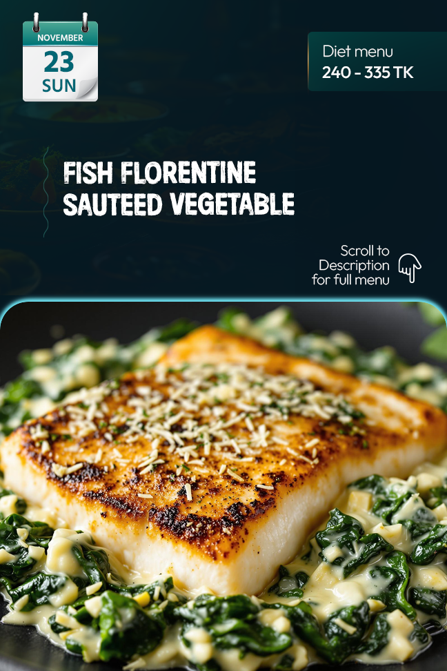 Fish Florentine Salad Fresh Baked Bun Nut Pack Mouth Freshener |