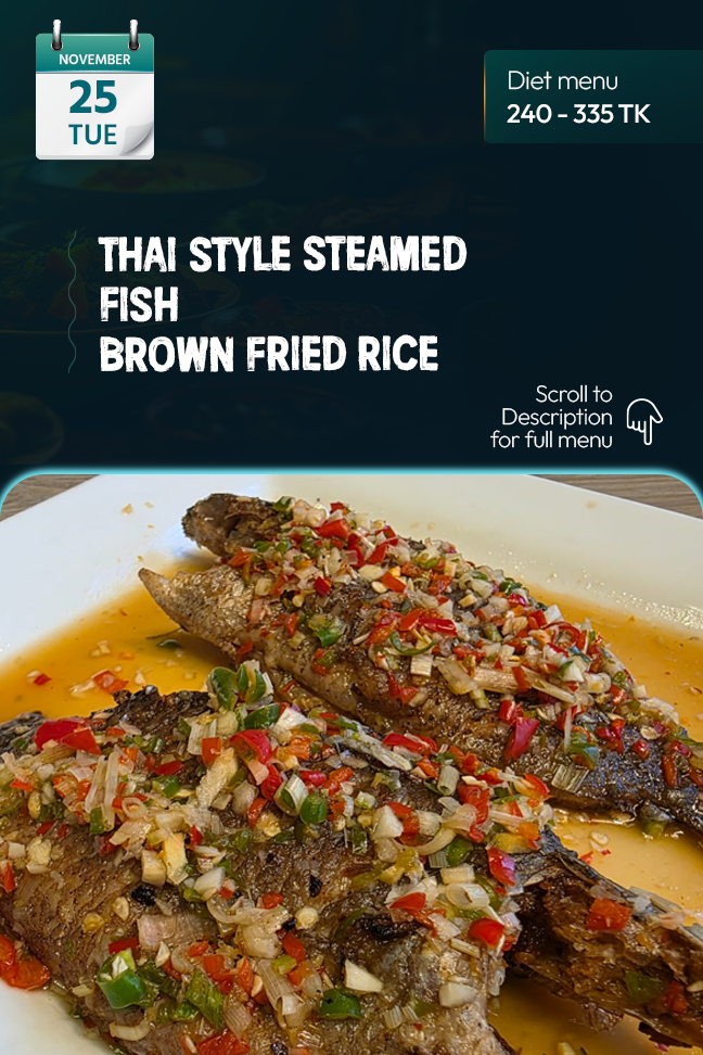 Thai Style Steamed Fish Brown Fried Rice Salad Nut Pack Mouth Freshener |