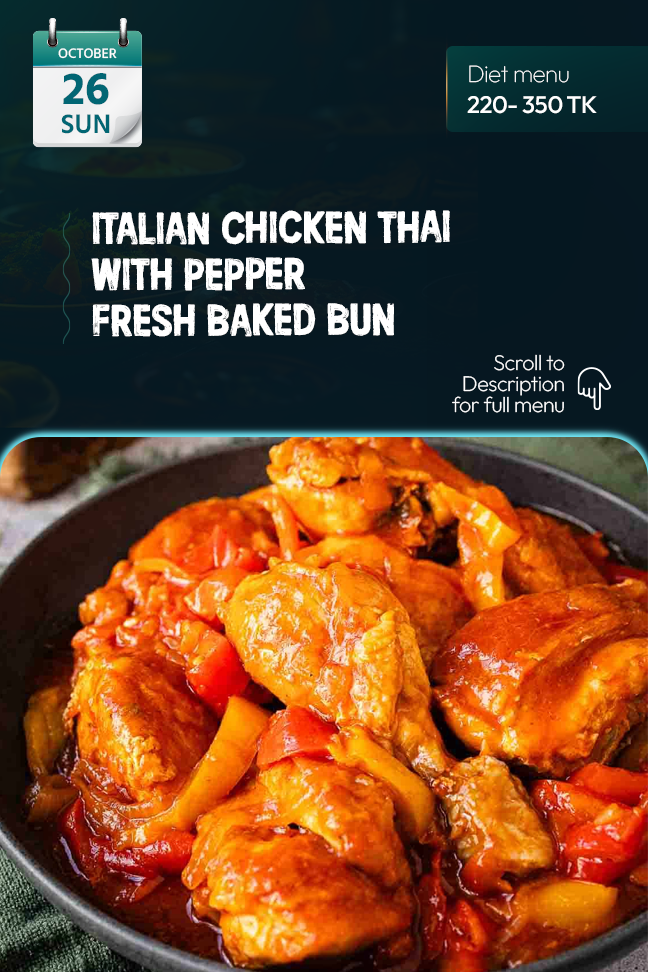 Diet Regular - Alternative Menu | Italian Chicken Thai With Pepper Fresh Baked Bun Fresh Salad Roasted Nut Mouth Freshener |