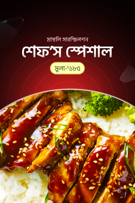 আপনার ঠিকানায় প্রতিদিন শেফ'স স্পেশাল (১৮৫) টাকার লাঞ্চ প্যাক ডেলিভারী হয়ে যাবে।