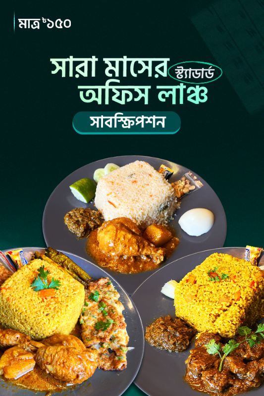 ঠিকানায় প্রতিদিন স্ট্যান্ডার্ড (১৫০) টাকার লাঞ্চ